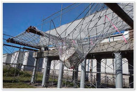 衝撃エネルギーを構造物全体で分散・吸収して落石を捕捉